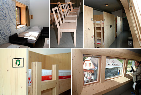 A turistacentrum épületét azzal a céllal emelték eredetileg 1938-ban, hogy a galyatetői Nagyszálló kialakítása előtt kipróbálhassák, milyen módon célszerű felépíteni a javarészt andezitből álló falakat. A létesítmény számos funkciót töltött be az évek során: volt építési iroda, a hotel személyzetének a szállása, pékség, síkölcsönző, iskola és kocsiszín is, ám az utóbbi időben kihasználatlanul állt. Felújításához a tavalyi évben fogtak hozzá Kovács Csaba és Vass-Eysen Áron építészek (N-ART Aechitekt Kft.) és a Vitáris László belsőépítész tervei alapján. A szerkezet szendvicsbeton: két látszóbeton réteg (egyik a teherhordó) között van a hőszigetelés. A fűtést hőszivattyú adja, a WC-khez szürkevizet használnak, melegvízhez napkollektorok vannak, stb, minden lehetsége módon igyekeztek környezetbarát megoldást választani. Az épület földszintjén családias közösségi tér található, és étterem üzemel, valamint itt helyezkedik el az akadálymentesített szoba is. Az első emeleten 5 darab 2-4 ágyas, különálló, fürdőszobával ellátott szobában térhetnek nyugovóra a vendégek, a második szintet pedig a bakancsos szállás uralja. Az egylégterű helyiségben összesen 32-en férnek el a négyesével elszeparált emeletes ágyakon. Kint sátrazni is lehet, az erre alkalmas területen körülbelül 10-15 sátor felverésére van lehetőség. Az épület udvarán találunk zárható szekrényeket, illetve vizesblokkot, a zarándokokat pedig az elmélyülésre alkalmas csendes helyiség várja. Szintén itt helyezkedik el a tesztközpont, ahol a legújabb bakancsok, kerékpárok, túrafelszerelések kipróbálására van lehetőség. A biciklivel érkezőknek tárolóhelyiség, bringamosó és szerviz áll a rendelkezésére.