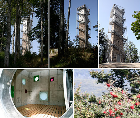 A beléptetőkaput elhagyva, 200 forint bedobása után - amit a karbantartásra fordítanak majd - 162 lépcsőfokot kell leküzdenie a látogatóknak. A közel 1000 méteres magasságban lévő tetőteraszról 360°-os panorámában lehet gyönyörködni. A torony azonban nem csak emiatt különleges; a belsejében három hangulatos, színes ablakokkal és kör alakú ajtókkal ellátott szoba várja a bivakolni vágyókat. A kilátóból lenézve a bükkerdőben, a kilátó mellett egy madárberkenyét is észrevehetünk. Forrás: MTI, Turistamagazin,