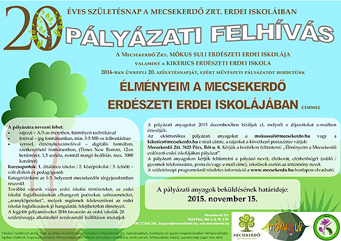 A legjobb pályaműveket 2016 tavaszán az erdei iskolák 20. születésnapja alkalmából rendezendő kiállításon mutatjuk be.