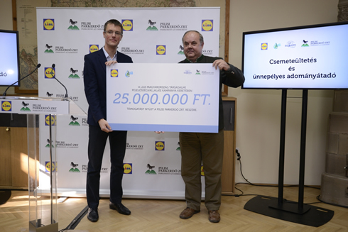A támogatást a Lidl Magyarország emlékfa-ültetéssel egybekötött ünnepélyes adományátadó eseményen nyújtotta át a Pilisi Parkerdő Zrt. részére. "Az őszi csemeteültetések a Parkerdő valkói, visegrádi, pilisszentkereszti és szentendrei erdészetek területeit érintik, ahová minden esetben őshonos fajokat telepítünk, ezzel is erősítve az erdők ellenálló képességét. A megnövekedett ültetési feladatok nagy kihívást jelentenek számunkra, ezért is örülünk a Lidl támogatásának. Jó látni ezt a fajta összefogást, és azt, hogy milyen sok ember érzi magáénak a hazai erdők sorsát" - nyilatkozta az eseményen Csépányi Péter, a Pilisi Parkerdő Zrt. termelési és természetvédelmi főmérnöke.