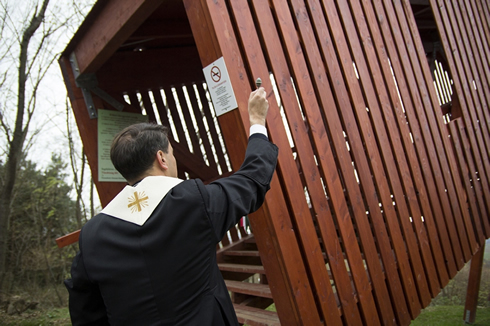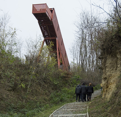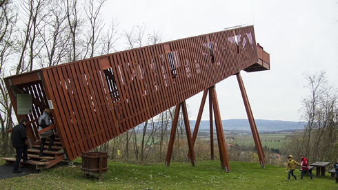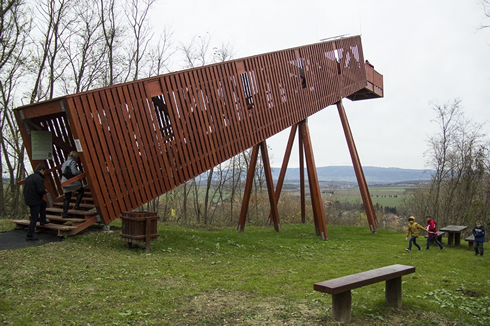 A kilátóhoz egy kavicsos úton jutottunk fel, az avatóünnepségre igyekeztünk. A falu lakói közül sokan megjelentek, gyerekek és felnőttek egyaránt. Hende Csaba országgyűlési képviselőt várták az érdeklődők, valamint, hogy átvágják a szalagot.