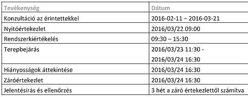 A kiértékelési folyamat tervezett menetrendje az alábbi: