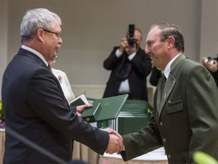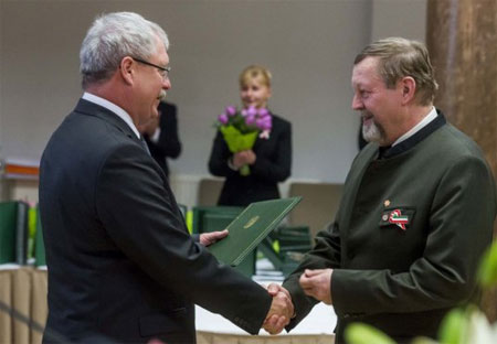 Szarvas Istvánnak, az Ipoly Erdő Zrt. Salgótarjáni Erdészet nyugalmazott kerületvezető erdészének, a gondjaira bízott erdők természeti, gazdasági és turisztikai értékeinek gyarapítása iránt elhivatott szakmai és közösségi tevékenységéért.