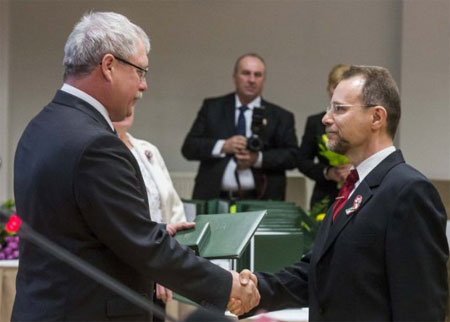 Csóka Péternek, az ENSZ Élelmezésügyi és Mezőgazdasági Szervezete Erdészeti Részlege osztályvezetőjének, a hazai erdőrendezés modernizálását és az erdők megőrzését célzó munkája, valamint széleskörű nemzetközi tevékenysége elismeréseként.