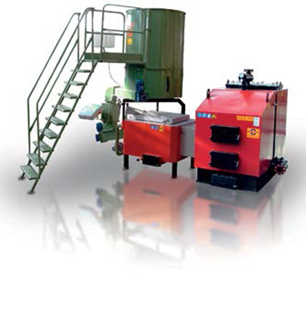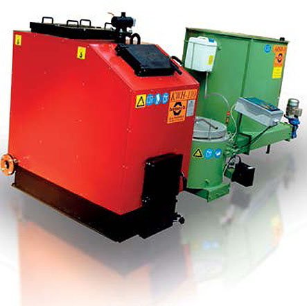 Komplett automatikus fűtési rendszer alakítható ki az AZSD előtéttüzelő kazán és a KWH melegvíztermelő kazánegység összekapcsolásával.