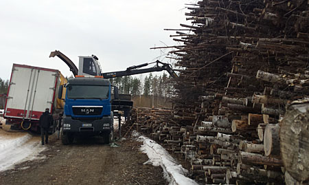 Aprítás az erdei rakodón.
