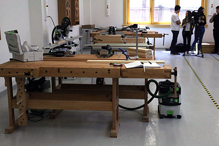 Igen figyelemre méltóak voltak a tanműhely gyalupadjai, melyekkel többféleképpen lehet rögzíteni a munkadarabokat, mint a régebbi gyalupadokkal.