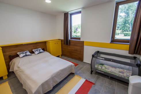 Az erdészeti erdei iskola fejlesztése Az erdei iskola tanterme az új berendezések mellett az erdőpedagógiai foglalkozásokat segítő szemléltető eszközökkel bővült, a terem bútorzata teljesen megújult. A fejlesztés során az eddigi három nagy hálóterem helyett 11 kisebb szoba készült el, így az 5-6 ágyas hálótermek mellett, 2-4 ágyas fürdőszobás szobák is létrejöttek, valamint a tetőtérben is megépült egy vizesblokk. A földszinten akadálymentes szoba vizesblokk, és fürdő is helyet kapott. Az épület földszintjén a tantermet, az éttermet és a 100 adagos konyhát átalakították, az étterem pedig fedett terasszal bővült, valamint az épület környezete is megújult. A sátorral érkező vendégek számára az erdei iskola mögötti részen sátrak felállítására alkalmas területet alakítottak ki. Az erdei iskola épületében lévő vizesblokk a sátrak irányából közvetlenül megközelíthető. A Gemenc Zrt. a Bajai Speciális Szakiskolával kötött megállapodást az erdei iskolai bútorzat egy részének elkészítésére. Az intézmény tanulói az iskola tanműhelyében felújították az étkező 100 db székét, állólámpákat, valamint a tetőtéri szobákba 15 db beépített szekrényt készítettek.