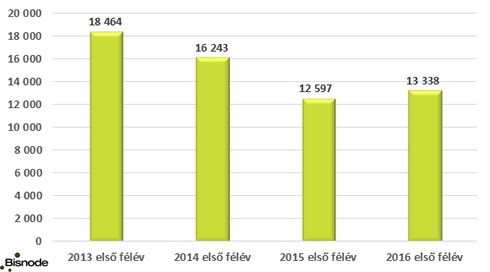 Újonnan alapított vállalkozások számának alakulásaNövekedett az új cégek száma a tavalyi év azonos időszakához mérten. 2011 óta folyamatosan csökken a cégalapítások száma, így a tavalyi első hat hónaphoz képest mért 5,9 százalékos emelkedés bizakodásra adhat okot. Bár a mostani javulás kétségkívül pozitív, mértéke mégis eltörpül a korábbi éveket jellemző visszaesésekhez képest. 2010-ben még rekordszámú, közel 50 ezer cég alakult éves szinten, ezt 20 százalékos visszaesés követte 2011-ben. Úgy tűnik, évi 25 ezer új céggel elértük a mélypontot 2015-ben. Ha az első félévi cégalapításokat nézzük, 2014 és 2015 között tapasztalhattunk jelentős - 22,45 százalékos - mérséklődést, ami 10 százalékponttal meghaladta a 2013 és 2014 közötti visszaesést. Ezek fényében az, hogy sikerült megfordítani a tendenciát és 6 százalék közeli növekedést elérni - kiemelkedő eredménynek számít.