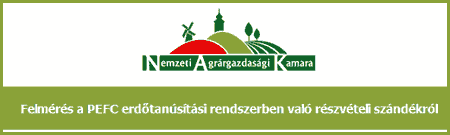 A Nemzeti Agrárgazdasági Kamara 2016. augusztus 19-ig kérdőíves felmérést végez a PEFC erdőtanúsítási rendszerrel kapcsolatban. A felmérés során a magyar erdőgazdálkodók PEFC erdőtanúsítási rendszer iránti érdeklődését kívánják feltérképezni, megvizsgálni.