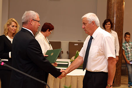 Takács Jánosnak, a Kisalföldi Erdőgazdaság Zrt. kerületvezető erdészének, a Győri Erdészet területén végzett több mint három és fél évtizedes munkája elismeréseként,