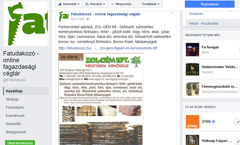 A kiadványokban megjelent vállalkozások adatlapjait folyamatosan töltjük fel a FATUDAKOZÓ facebook oldalára. 2011. óta elektronikus formában is elérhetővé tesszük a címtárakat! Kérjük az érdeklődőket, emailben jelezzék igényüket az elektronikus Erdészeti Cím- és Terméktár 2016-ra vagy Faipari Cím- és Terméktár 2016-ra!