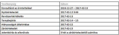 A kiértékelési folyamat tervezett menetrendje az alábbi: