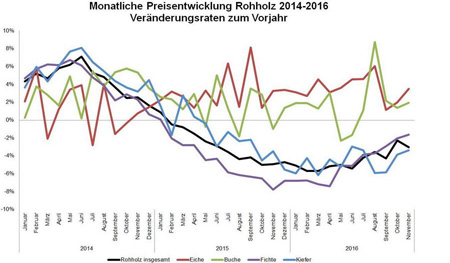 Németország Szövetségi Statisztikai Hivatala adatai szerint az elmúlt két évben a fa alapanyag piacon az árak igen érdekesen alakultak. 2014. tavaszán, nyarán még 6-7%-os áremelkedés volt tapasztalható az előző év azonos hónapjaihoz képest, ugyanakkor 2015. elejétől a faalapanyag árak jelentősen visszaestek.