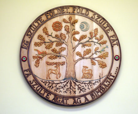 A kitüntetések átadása után dr. Fazekas Sándor miniszter és dr. Bitay Márton államtitkár felavatták a Darányi Ignác terem előterében a Debreceni Fafaragókör által ajándékozott Életfa Domborművet.