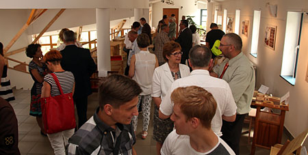 A kiállítást Piri József, a Vas Megyei Kereskedelmi és Iparkamara (VMKIK) alelnöke nyitotta meg. Mi idősebbek tudjuk, a fiatalabbaknak mondjuk: jó munkához mindig 3 dolog kell: jó anyag és eszköz, illetve megfelelő szakember. Tudjuk, hogy a 80-as években volt megfelelő szakember, volt anyag, olyan, amilyen, az eszközállomány is meglehetősen kifogásolható. Mára egészen kiváló anyagokkal dolgozhatunk, egészen jó az eszközállomány, viszont a harmadik alapvető tényezővel, az emberi tényezővel, a jó szakmunkással, azzal kezdenek problémák lenni. Ezt a kiállítást is az indukálta, hogy a fiatal szakmunkások kreativitását be tudjuk mutatni, munkáik tényleg színvonalasak. Annak, aki ezt a szakmát választja, el kell döntenie, hogy neki tetszik az asztalosműhely illata, az ottani rend, a gépek a szerszámok, a kreatív lehetőségek. Tudjuk: a faipar is oda jutott, hogy már hiányszakma. Valamikor kifejezetten divatszakma volt, ami mára sajnos az ellenkezőjére fordult. A másik probléma, hogy a bemenet emberanyagból kicsit nem megfelelő. Az lenne a kívánatos, ha a jobb tanulók is a szakmunkás lét mellett döntenének. Ehhez persze megfelelő megbecsülés is kell. A szakmunkás keresetek terén az olló a régi összezárt állapotból kinyílt. Mára sajnos a szakmunkás bérek lemaradtak. Igaz vannak próbálkozások a bérszínvonal emelésére. A Kormány is rájött arra, hogy szakmunkástanulónak csak úgy mennek majd, ha a megfelelő ösztöndíjrendszert újra visszahozzuk. A vállalatokat, főleg a kiemelt szakmákban ösztönzik, hogy foglalkoztassanak tanulót, s ennek a költségei is nagyjából rendben vannak. Kis cégeknél az oktató költsége még nem megoldott. Nagy gond, hogy nincs középkorú szakember. Öreg van, meg jön a tanuló gyerek, s így nagy köztük a generációs távolság. Kivett oktatóval kellene dolgozni. Nehéz beállítani a termelésbe a gyerekeket, de meg kell próbálni, mert rájöttünk, hogy a gyerek messze volt a valós munkahelyi légkörtől, és az elméleti képzőhelyen nem jöttek létre olyan színvonalú műhelyek, amilyenek kellettek volna. A Kormány így döntött, hogy ebben az új rendszerben próbálja meg a szakmunkás képzést felpörgetni. Abban bízom, hogy ez sikerülni fog. Gratulálok mindenkinek, aki e kiállítás létrehozásában részt vett, ez jó kezdeményezés. Minél több gyereknek meg kell mutatni: mik készültek. Orientációs helyeket kellene létrehozni, ahol a gyerek megfoghatja a szerszámot. Nem biztos, hogy elég, ha körbesétálnak vele a kisüzemben vagy a nagy gyárban. Ha megfogja a fúrógépet, vagy más gépet, szerszámot és azzal dolgozhat, az más élményt ad. Erről most többet nem érdemes beszélni, de ezt is meg kellene oldani. A szülők szerepe is jelentős. Van a gyermek szándéka, amit a szülő vagy helyesel, vagy nem, de aki az asztalos szakmát választja, az élet bizonyítja, hogy jól dönt. Köszönöm mindenkinek azt a segítséget, amivel e kiállítás létrejött, és amit a további pályaorientációban ki fog fejteni.