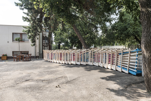 Idén ünnepeljük a 15. évfordulóját annak, hogy a Tokaji borvidéket az UNESCO felterjesztette a világörökségi listára kultúrtáj kategóriában. Ez adta az egyik apropóját annak, hogy idén a Hello Wood itt rendezte meg Építész Mustra '17 (2017. július 15-22.) elnevezésű oktatási programját, a Tokaj Borvidék Fejlesztési Tanács támogatásával. Az ország összes építész képzéséről és a Magyar Képzőművészeti Egyetemről összesen 150 diák és a hazai építészeti oktatás legjavát képviselő, díjnyertes építész kapcsolódott be a Tokaji borvidék megújulását övező közös gondolkodásba, és épített fel 11 projektet a régió 7 településén - Abaújszántón, Golopon, Mádon, Mezőzomborban, Monokon, Tállyán és Tokajon. Először fordult elő, hogy a Hello Wood Architizer A+ Award-nyertes programját az összes résztvevő egyetem beépítette a tantervébe. Az oktatási program célja, hogy a fiatalok és vezetőik ráhangolódjanak a helyi jellegzetességekre - az egyedülálló adottságokra, természeti-, kulturális- és épített örökségre, évszázados hagyományok ápolása mellett, a megújulásra való törekvésére, a bor és az építészet kapcsolatára - és az Y-generáció friss ötleteivel bővítsék a régió megújulásának gondolatvilágát. Az egyetemek saját csapatvezetőkkel és csapattal indulhattak, hogy összemérjék erejüket. A versenynek tétje is volt: az utolsó nap, a csapatok szavazatai alapján a Moholy-Nagy Művészeti Egyetem monoki projektje nyerte el az 1 millió forint értékű fődíjat. A csapat a Kálvária-domb alján álló fa köré épített szakrális teret: a Merengőből egyedülálló kilátás nyílik a falura, miközben a temető és a Kálvári-templom közti tér meditációra is hív. A Tokaj Borvidék Fejlesztési Tanács különdíját a Szent István Egyetem Tájépítészeti és Településtervezési karának Tállyoló projektje kapta. A Valkai Csaba és Zelenák Fruzsina vezette csapat alkotása azt jelzi, hogy Tállya Európa mértani közepe, és egyben említést tesz a többi európai településről, amelyek mind ugyanezt gondolják elhelyezkedésükről. A Hello Wood különdíját a Széchenyi István Egyetem nyerte; Cseh András, Élő József és Tátrai Ádám csapatvezetők a tállyai Mailloth-kastély parkja és az iskolaudvar elválasztására szolgáló rozzant és rosszemlékű drótkerítés helyett terveztek csapatukkal mobil, játszóeszközként is használható Kerekítést. A flexibilis szerkezet egyben területfoglalás is, amely játékos vonalvezetésével csippent némi teret, az kicsi udvaron játszó iskolások számára.