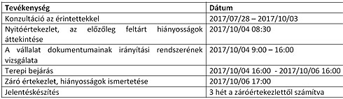 A kiértékelési folyamat tervezett menetrendje az alábbi: