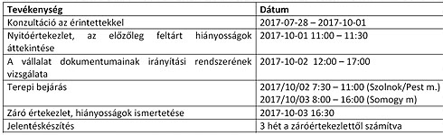 A kiértékelési folyamat tervezett menetrendje az alábbi: