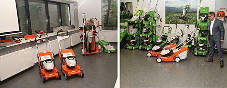 A hazai STIHL cég bemutatótermében már jelen vannak a narancssárga fűkaszák és más akkumulátoros kerti gépek, és még van a zöldekből is, de szép lassan 2019-re a név és színváltás véget ér.