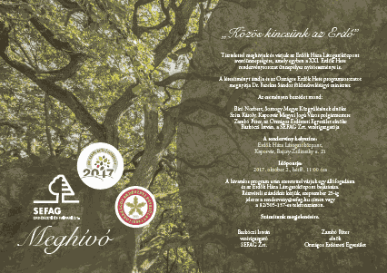 Az Erdők Hete nyitó rendezvénye 2017. október 2-án hétfőn Kaposváron lesz, ahol dr. Fazekas Sándor földművelésügyi miniszter jelenlétében átadják az Erdők Házát. Helyszín: Kaposvár, Bajcsy-Zsilinszky u. 21. Időpont: 2017. október 2., hétfő, 11:00 óra Meghívó az Erdők Hete nyitórendezvényre, egyben az Erdők Háza átadási ünnepségre.