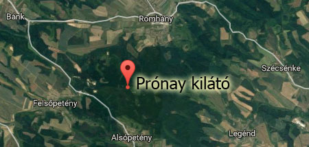 A Prónay kilátó a Romhányi-hegyen, a Kecske-kő 421 m magas csúcsán épült fel, az Ipoly Erdő Zrt. beruházásában. A saját forrásból finanszírozott beruházás nettó 45 millió forintból valósult meg. A kilátó tervezője BAHCS Művek Kft, kivitelezője a keszthelyi Fitotron System Kft volt. A Prónay kilátó 32,5 köbméter rétegelt, ragasztott lucfenyőből épült, a teljes magassága 26 méter, a felső teraszra 128 lépcső vezet. Az Országos Kéktúra útvonaláról rövid kitérővel megközelíthető építmény minden évszakban és napszakban szabadon látogatható, a 23 méter magasan lévő teraszáról a környező tölgyerdő fáinak koronája fölött szinte teljes körpanorámás kilátás élvezhető. Nyugat-északnyugati irányban a Börzsöny, északon a Selmeci-hegység a Szitnya csúccsal, kelet felé a Szandavár, illetve a távolban a Karancs, Mátra hegyvonulatai, délről a Gödöllői-dombvidék lankái, majd délnyugati irányban a Naszály és Pilis - Visegrádi-hegység csúcsai is láthatók. A beruházás a "Nyugattól keletig a nógrádi erdőkben" mottónak megfelelően a Társaság korábbi években megvalósított fejlesztéseit jól kiegészíti. A kilátó a börzsönyi és cserháti erdők bejárásakor felkereshető kedvelt túraútvonalak egyik állomáshelye. Az Országos Kéktúra útvonalán haladva lehetőség adódik a Börzsöny és a Cserhát megismerésére. Nagymarosról indulva a Julianus kilátóból a Dunakanyar panorámáját csodálhatjuk meg, majd Kóspallagon áthaladva a Börzsöny legmagasabb pontjához, a Csóványoshoz érkezünk, ahonnan nagymarosi kilátás tárul elénk. Innen a Kéken, Nógrádon keresztül érjük el Szendehelyet. A Katalinpusztai Kirándulóközponton át a Cserhát legnyugatibb, egyben legmagasabb hegytömbjéhez, a Naszályhoz visz a jelzés. Ezt követően Ősagárdon keresztül, Felsőpetényt érintve, Alsópetényen át vezet a Romhányi-hegyre a túra. Romhánytól kelet irányába Szandavár romjaihoz érdemes a Kékről kitérőt tenni a pazar kilátásért. A Kéktúra útvonala mentén elérhető a néprajzi, kulturális jelentőségű Világörökség címet viselő falu, Hollókő, a fenntartásunkban lévő Tepke kilátó, és az ország egyik leglátogatottabb nemzeti kegyhelye, Mátraverebély-Szentkút is. Nógrád megyét és a Cserhátot a kastélyok, kúriák, várak vidékének is szokták nevezni. Nagy nemesi családok vertek e vidéken gyökeret, melyeknek tagjai hosszú évszázadokon át játszottak szerepet a vármegye történelmében. Az alsópetényi, romhányi, acsai Prónay-kastély épített örökségünk értékes eleme. A terület birtokosok a megyei közép- és kisnemesség soraiból kerültek ki. Lakóépületeik, majorsági központjaik nem a nagy barokk kastélyok közé tartoznak, hanem a középnemesi rezidenciák, kisnemesi kúriák csoportjába illeszkednek. Általában nem egyszerűen reprezentatív lakóhelyek voltak, hanem egyszerre szolgáltak gazdasági és rezidenciális funkciókat. Romhány nevezetes eseménye az 1710. január 22-én vívott véres ütközet, amelyben II. Rákóczi Ferenc és Bercsényi Miklós által vezetett kurucokat Heister Sigbert császári tábornok visszaverte. A csatára emlékeztető látványosság a község hatalmas törökmogyoró fája. Írásos feljegyzések szerint, a rodostói száműzetésben lévő II. Rákóczi Ferencet meglátogatta egy volt katonája, akinek a fejedelem egy cserjét adott, hogy ültesse el Romhányban a csata emlékére. Történetek szerint a fát a katona nem a csata helyszínén ültette el, hanem egy távolabb eső dombon. Ennek ellenére évszázadok óta úgy él a nép emlékezetében, hogy a Kastélyka dűlőn lévő fa Rákóczi mogyorófája. A magyar és a külföldi gyümölcsfajták leírásával foglalkozó 1848-as hős Bereczki Máté a község szülöttje. A Lókos-patak régi medre felett ma is látható háromnyílású kőhíd Nepomuki Szent János szoborral a XVIII. században épült barokk stílusban. Anyaga romhányi homokkő. Alsópetény szlovák nemzetiségű község. A település birtokosa 1507-től 1541-ig Werbőczy István volt, aki országbíróként itt írta a híres Hármaskönyvet (Tripartitumot), mellyel 1514-re készült el, és évszázadokon át a nemesség jogforrása lett. Werbőczy emlékét őrzi a templomdombon található hatalmas méretű gránit emlékmű, a Werbőczy gúla. A falu szélén álló kisebb kúria az Andreánszky családé. Az ő híres leszármazottjuk volt Andreánszky Gábor (1895 - 1967), botanikus, az MTA tagja, a községben található Prónay kastély szépen felújított, az egészségturizmust szolgálja. A cserháti vidék palóc kultúrájának emlékeit több település is őrzi, ugyanakkor rendezvényeken máig élő hagyományként ápolják a szokásokat, melyeket a díszes népviselet, a házi készítésű palóc ételek tettek méltán híressé. A kilátóból szemlélődve csak a szemnek tűnik távolinak az Ipoly-mente és a Karancs-Medves-vidék, mint szomszédos tájak, ahol újabb turisztikai beruházásokkal bővítjük a kínálatot. Ezek a vidékek olyan kulturális, történelmi és geológiai értékek őrzői, mint a Palóc Múzeum Balassagyarmaton, Madách és Mikszáth kúriák, a szécsényi kastélymúzeum és történelmi városközpont, a Páris-patak-völgye, a somoskői, szilváskői bazalt- és a béri andezitoszlopok, a nógrádi, csábrági, somoskői és salgói vár. Iformációs szakasz: Ipolyerdő Zrt.