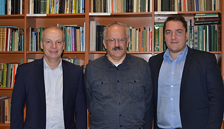 (balról jobbra) Dr. Martin Münsterkötter, Dr. Sipos György, Dr. Kovács Gábor, a soproni Funkcionális Genomika és Bioinformatika Kutatócsoport tagjai.