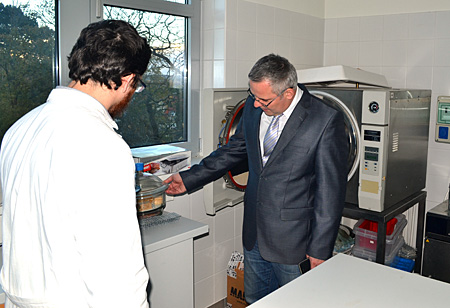 Prof. Dr. Németh Róbert, a Soproni Egyetem tudományos és külügyi rektorhelyettese a Faanyagvédelmi laboratóriumban.