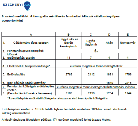 A felhívással összhangban módosult a 6. számú - A támogatás mértéke és fenntartási időszak célállomány-típus csoportonként elnevezésű melléklet is.