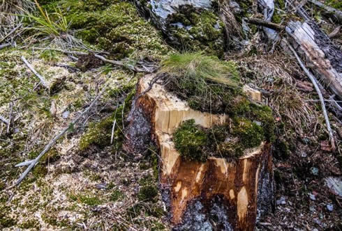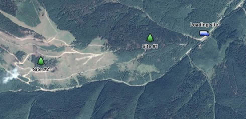 A második helyszín egy lucfenyő-erdő, amelyben egy nagy mennyiségű ritkítás nyomait lehet felfedezni. Ezen a helyszínen kivágták az összes piaci értékkel rendelkező fát és ugyanúgy a törzseken a semmi írásjelet vagy jelzést nem tartalmazó hamis pecsétek találhatóak, amelyek a szilánkok belső felét is színezik. Azonban, ami még feltűnőbb, hogy úgy vágták ki a fákat, hogy az útról ne látszódjon: meghagytak egy vékony lucfenyő sort, hogy takarják a kivágott fák törzseit. Az egyetlen törzset, amely látszott volna az útról is, letakarták mohával. A helyszínen látható nyomok szerint lovakkal szállították el a farönköket. A két helyszín közül a kivágási engedélyeket monitorizáló weboldal szerint egyikre sincs semmiféle engedély érvényben jelenleg.