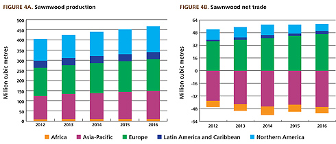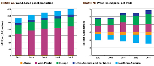 A 2016-ig összesített adatok alapján a leggyorsabb ütemben Európában, Észak-Amerikában és az Ázsia-Csendes-óceán térségében növekedett a legfontosabb faipari termékek (ipari gömbfa, fűrészáru, farostlemezek és pellet) előállítása, ami köszönhető a pozitív gazdasági folyamatoknak, Kelet-Európa kibővült termelési kapacitásainak különösen az úgynevezett OSB lapok (irányított szálelrendezésű lap, angolul Oriented Standard Board) esetében, illetve a bioenergia iránti keresletnek.