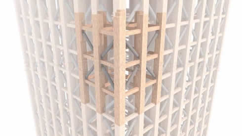 Ez az épület speciális fa-acél hibrid szerkezettel készül, 90%-os fa arány mellett. A magassága 350 méter, az épület 70 emeletes lesz (föld felett). Alapterülete 6500 m2, összterülete 455000 m2 lesz.