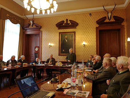 A munka eredményeként örömünkre dr. Oroszi Sándor, és Andrésiné dr. Ambrus Ildikó igazgató asszony segítségével már kezünkben van a székházból Ásotthalomra, majd onnét 1961-ben a Vajdahunyad Várba, a múzeumba került erdészeti eszközök gyűjteményének eredeti átadási listája. Dr. Ádámfi Tamás tagtársunk gróf Forgács Károly trófeagyűjteményének megmaradt példányairól adott információt, melyek egy része ma szintén a Vajdahunyad Várban található meg. Ormos Balázs kutatási engedélyért fordult a múzeumhoz, hogy elkezdődhessen tényleges feltárási munka. Értékes információkat adott dr. Király Pál egykori főtitkárunk és dr. Sárvári János a könyvtár őre is. Több hozzászóló is megfontolandó javaslatokat tett, mely vizsgálatra érdemes. A Szenioriok Tanácsa által elindított feltárási munkát folytatjuk és megfelelő információ birtokában előterjesztjük az egyesület döntéshozó testületei elé. Az ülésen dr. Szikra Dezső titkár vezetésével véglegesítették a tanács 2018. évi programját, majd baráti köszöntések között ürítették poharaikat jó egészséget kívánva egymásnak a további hasznos együttlétek reményében. Szöveg és fotó: Ormos Balázs