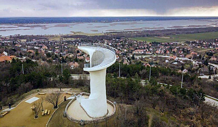 Kruppa Gábor és Merkel Tamás a helyi lakosok által nyertes tervének végeredménye közel 20 méter (1848 cm) magas különleges formájú építmény, tetejére 118 lépcsőfok vezet fel. A kilátópontra a torony belsejében futó csigalépcsőn juthatunk fel, egy ponton ki is lehet kukkantani a tó felé, mielőtt a teljes panoráma feltárul. A kilátó építéséhez a Földművelésügyi Minisztérium 80 millió Ft tőkeemelést biztosított a VADEX Mezőföldi Zrt. számára, egyben ezzel járult hozzá, a már 2016-ban megfogalmazott "Bejárható Magyarország" program helyszínfejlesztéséhez. A torony építése 2016 júliusában indult el, de a 2017 januárjára tervezett átadás a fővállalkozó cég problémái miatt csúszott, így az építtető VADEX Mezőföldi Erdő- és Vadgazdálkodási Zrt.-nek új közbeszerzést kellett kiírnia. Az új közbeszerzés eredményeként megbízott új kivitelezővel az építkezés is új lendültet kapott, így a kilátó műszaki átadása 2018. január 12-én megtörténhetett. A kilátó bruttó 143,5 millió Ft értékben készült el. A hiányzó összeget a VADEX Mezőföldi Zrt. saját forrásából egészítette ki.