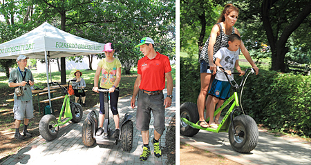 A mátrafüredi High Tech Sportok Bázisa nem mindennapi sporteszközöket hozott az EGERERDŐ-s gyereknapra. Segway, monsterroller, monstercar, csupa érdekes nevű, a hétköznapinál jóval robusztusabb, erdőre, hegyvidékre tervezett sporteszközök. A gyerekek nagy izgalommal szálltak fel a tőlük jóval súlyosabb szerkezetekre, hogy egy rövid körre elvigyék a széles kerekű járgányokat.