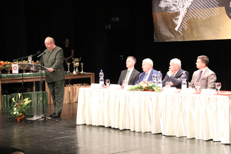 Az Országos Erdészeti Egyesület elnöke, Zambó Péter utalt arra, hogy a vándorgyűlés először jár Békés megyében, és arra is, hogy az itteni világ sokban különbözik a többitől, de valamiben viszont azonos: az erdészbarátságban. Hangsúlyozta, hogy az alapítókat összetartó legfőbb erő a magyar nyelv közössége volt, majd arra buzdított, hogy tegyünk ma is a magyar szakemberek kapcsolatáért, a magyar szaknyelv és identitás megőrzéséért. - A hely szelleme főhajtásra kötelez a vidék jeles történelmi személyisége, a miniszter, a képviselő, a királyi biztos és Szeged újjáépítője, Tisza Lajos gróf emléke előtt. Az ő képessége és ereje fogta össze a dualizmus erdészeinek legjavát. Bedő Alberttel formálták az egyesületet a monarchia jelentős szakmai szervezetévé. Szellemi hagyatékát az utódok alázatával ápoljuk - mutatott rá Zambó Péter. Hozzátette: elnökként a legfőbb célja az volt, legyen jó az egyesület tagjának lenni. Ezt követően az egyesület eredményeit ismertette, főként a közösségszervező és az oktatási tevékenységüket. Kiemelte: erdészeti erdei iskolák évente 60 ezer gyermeket fogadnak, és el szeretnék érni, hogy az erdő ügye megjelenjen a nemzeti alaptantervben. - Legyen tanulság számukra az igazi alföldi mentalitás: az életrevalóság, a szorgalom, az egyértelműség és az egyenes gerinc - hangoztatta.