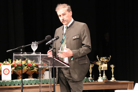 Spiegel Endre, a DALERD Zrt. vezérigazgatója köszöntőjében így fogalmazott: az ilyen találkozó az egységről, a barátságról és az összetartásról szól, majd ismertette a vándorgyűlés két napjának programjait. Néhány szóban szólt az egyesület megalapítója, a 120 éve elhunyt Tisza Lajos gróf érdemeiről, és kiemelte, hogy 1875-től haláláig az elnöki tisztséget is betöltötte. Gondolatait azzal zárta, hogy az erdészhagyományokat nem ápolni kell, hanem megélni. Éljük meg hát közösen!, javasolta Spiegel Endre.