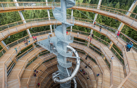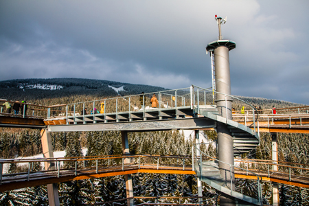 A Krkonoše (magyarul Óriás-hegység) Nemzeti Park szívében, a fák között bújik meg az a lombkoronasétány, amely 1300 méter hosszan vezet végig az erdők csodálatos élővilágán. Az ösvényen végigsétálva közelebbről is megismerkedhetünk a helyi erdők fáival a gyökerektől a lombkoronáig, és olyan állatokkal, növényekkel is találkozhatunk, amelyeket máshol aligha láthatunk testközelből.