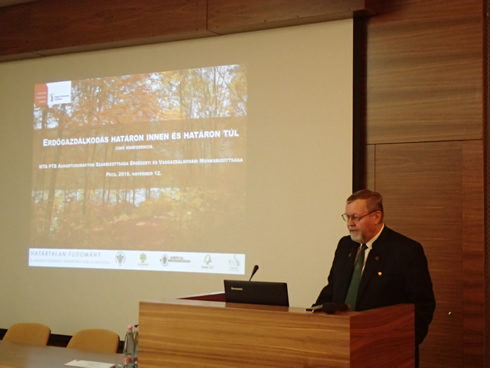 A Magyar Tudomány Ünnepének 2018-as mottója: "HATÁRTALAN TUDOMÁNY", így az előadók között hazánk jelenlegi földrajzi határán túlról érkező szakemberek betekintést nyújtottak az Erdély területén folyó erdőgazdálkodás természeti adottságai valamint jogi keretei közé.