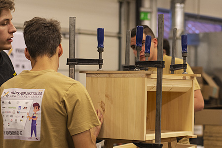 Amíg a tanulók a tanműhelyben dolgoztak, kísérő tanáraik számára a verseny szponzorai tartottak előadásokat, valamint kerekasztal beszélgetésen vettek részt a faipart és a faipari oktatást érintő témákkal. A jó hangulatú kétnapos soproni verseny részleteiről a decemberben megjelenő Magyar Asztalosban olvashat. Fotók: Bognár Anna és Tóth Norbert Videó: Schlakker Levente Forrás: faipar.hu Kapcsolódó: