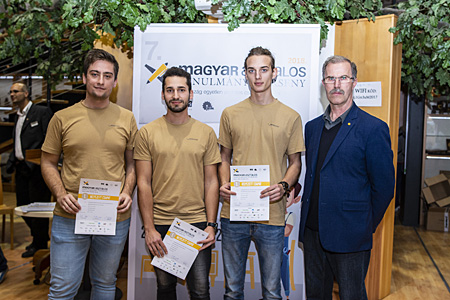 A győztes csapat és Tóth Zoltán, az egyik felkészítő tanár