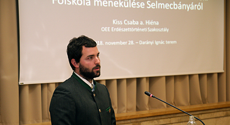 Majd Kiss Csaba az Erdészettörténeti Szakosztály elnöke a Selmecbányai Akadémia Sopronba költözésének történelmi tényeit, az első világháborús hátteret, a költözés személyeit és eseményeit idézte meg archív felvételek segítségével, a Magyar Királyi Bányászati és Erdészeti Főiskola, az erdészeti felsőoktatás Magyarországra való menekülésének 100. évfordulója alkalmából.