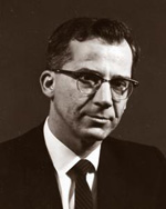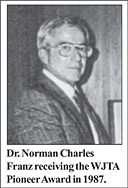 Íme Norman C Franz, aki 1953-1968. között volt erdészeti társprofesszor (Associate Profesor of Forestry) a Michigan Egyetemen. Sok helyen, pl itt jelenik meg a másik arcképe is, mely 1987-ben készült, amikor a Vízsugár Technológiai Szövetség (WaterJet Technology Association = WJTA) a technológia úttörője díjjal tüntette ki. Ez utóbbi forrás (és más leírások) szerint onnét jött az ötlet, hogy nagynyomású kazánok tisztításához használt seprűk nyelét a réseken kiszökő gőz esetenként elvágta. Dr. Franz először együtemű nyomásfokozóval kísérletezett, amivel 50.000 psi-t tudott elérni. (psi = pound per square inch, tehát font/négyzetcol és 1 psi = 6.895 Pa = kb 0,07 bar, tehát amit dr. Franz elért, az 3.500 bar) Ennél a nyomásnál már képes volt fát és egyéb anyagokat vágni normál vízzel. Íme egy példa: csomagolóanyaghoz vízzel vágott rétegeltlemez korongok.