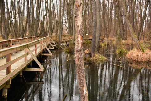 A tanösvény leglátványosabb része a közel 4 hektár nagyságú láperdőben kialakított szakasz a kilátótoronnyal. A nyílt vízfelületű lápból kelőbújó fatörzsek meséssé teszik az egyedülálló tájat, mely minden évszakban tartogat érdekességet. Bódi Katalin fotós a napokban járta be a cölöpsétányt, és gyönyörű felvételeket készített a ritka látványosságról.