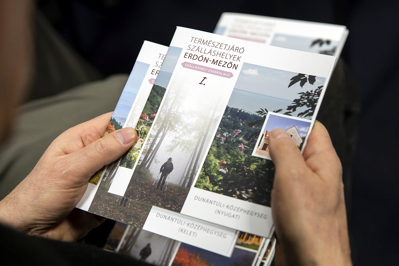Az eseményen bemutatták a Természetjáró szálláshelyek erdőn-mezőn című zsebkalauz-sorozat második kiadását. (Fotó: MTI/Mohai Balázs)