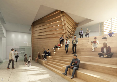 A három szintes épület arra csábítja a látogatókat, hogy végiglátogassák a változatos kiállító tereket. Nagy terek vannak a földszinten, melyek "visszhangozzák" a városi környezet méreteit és ritmusát, majd a kisebb termek a felsőbb szinteken adnak otthont a kisebb kiállítási tárgyaknak. A központban van a felülről megvilágított átrium, mely lehetővé teszi, hogy behatoljon a természetes fény az épületbe.
