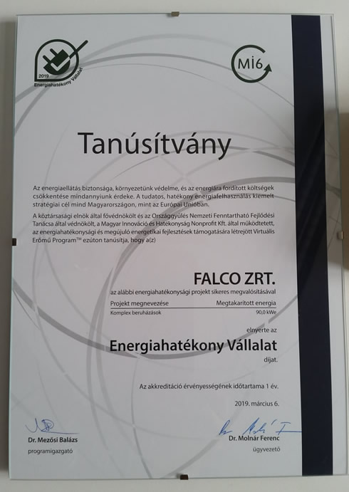 2019. március 6-án nyújtotta át Áder János köztársasági elnök az "Energiahatékony vállalat" díjat a FALCO Zrt. részére.