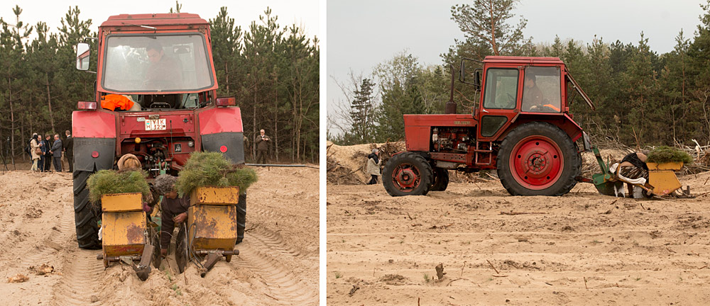 Itt korábban is fenyves volt. A 2018-ban letermelt területen az újraültetés érdekében elvégezték a tuskókiemelést, s a tuskókat pásztákba rendezték. Utána a területet mélyszántották (60-70 cm). Az ültetést már sokszor bevált összkerékhajtású traktorral végzik, a rá függesztett ültetőadapterrel. A gép az ültetési sorok végén már nem tud tökéletes munkát végezni, ezért azt kézi erővel kell kiigazítani. A sorvégeken azonban a fenyő helyett az őshonos szürke nyár csemetéjét alkalmazzák. Az utolsó sort is szürke nyár csemetével ültetik. A lombos szegélyek a természetesebb és változatosabb erdőkép mellett az erdőtűz elleni védekezést is szolgálják. A KEFAG erdeit alapvetően nem a gomba és rovarkárosítások fenyegetik, hanem a száraz homokon az aszály mellett a legnagyobb veszélyt az erdőtüzek jelentik. Az erdőtüzek elleni megelőző védekezést szolgája a tűzpászta és nyiladékrendszer, melyet útközben is lehetett látni, valamint a fokozottan tűzveszélyes fenyőállományok a tűzzel szemben ellenállóbb lombos fafajokkal szegélyezése. Az itt elültetett csemeték mindegyike az erdőgazdaság saját csemetekertjéből származik. Sulyok Ferenc büszke arra, hogy a 2019. tavaszi erdősítési idényben a legtöbb csemetét, mintegy 4 millió darabot a KEFAG Zrt. ültetett el, több, mint 510 ha-on. A cég csemetetermesztési ágazata további 2,5 millió darab erdészeti csemetét értékesített a többi erdőgazdálkodó számára, magán és állami szférában egyaránt, azaz a mostani ültetési szezonban az országosan felhasznált 42 millió csemetéből 6,5 millió darab (több mint 15%) a KEFAG Zrt.-től származik. A KEFAG 11 erdészeti csemetekertje készen áll e mennyiség két éven belüli megduplázására, ezzel is segítve az ország fásítását. Kiskunságban az erdő számára úgynevezett határtermőhelyeken dolgoznak, ezzel olyanok, mint a végvárakon küzdő elődök. A korábbi futóhomokon gazdálkodva és ezen a tájon élve, tudják, hogy a fásítási program a legjobb megoldás a klímaváltozás negatív hatásainak ellensúlyozására.