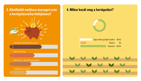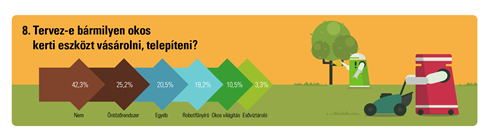A kutatásból kiderül, hogy a válaszadók többsége jelentős összeget hajlandó áldozni arra, hogy kialakítsa álomkertjét. A kérdőívet kitöltők közel fele ugyanis 100 és 500 ezer forint közötti összeget tervez elkölteni a kertrendezésre, míg minden hetedik válaszadó akár egymillió forintos büdzséből is gazdálkodhat. Ennek ellenére azonban okos eszközök beruházását a válaszadók 42 százaléka mellőzi, azok azonban, akik nyitnának az intelligens megoldások felé, elsősorban az öntözőrendszerek kiépítésében gondolkodnak. A kérdőívet kitöltők egynegyede a robotfűnyírót részesítené előnyben, míg minden tizedik vásárlót foglalkoztatnak a megújuló energiát használó kerti világítótestek.