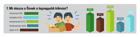 Vásárlói motivációk és döntések Annak ellenére, hogy a kert egész évben gondozásra szorul, csupán a válaszadók egyharmada ápolja otthona környékét szezontól függetlenül, a válaszadók 58,6 százaléka pedig csak tavasszal érzi úgy, hogy kertjének szüksége van a karbantartásra. Nem csoda, hogy a hobbikertészek több mint fele a kertfenntartást tartja a legnagyobb kihívásnak, míg egyharmaduknak a kerttervezéssel gyűlik meg a baja. A kertépítés minden ötödik lakossági fogyasztónak okoz fejtörést, míg magának a kertnek a berendezése 10 százalékuk számára jelent kisebb-nagyobb problémát.